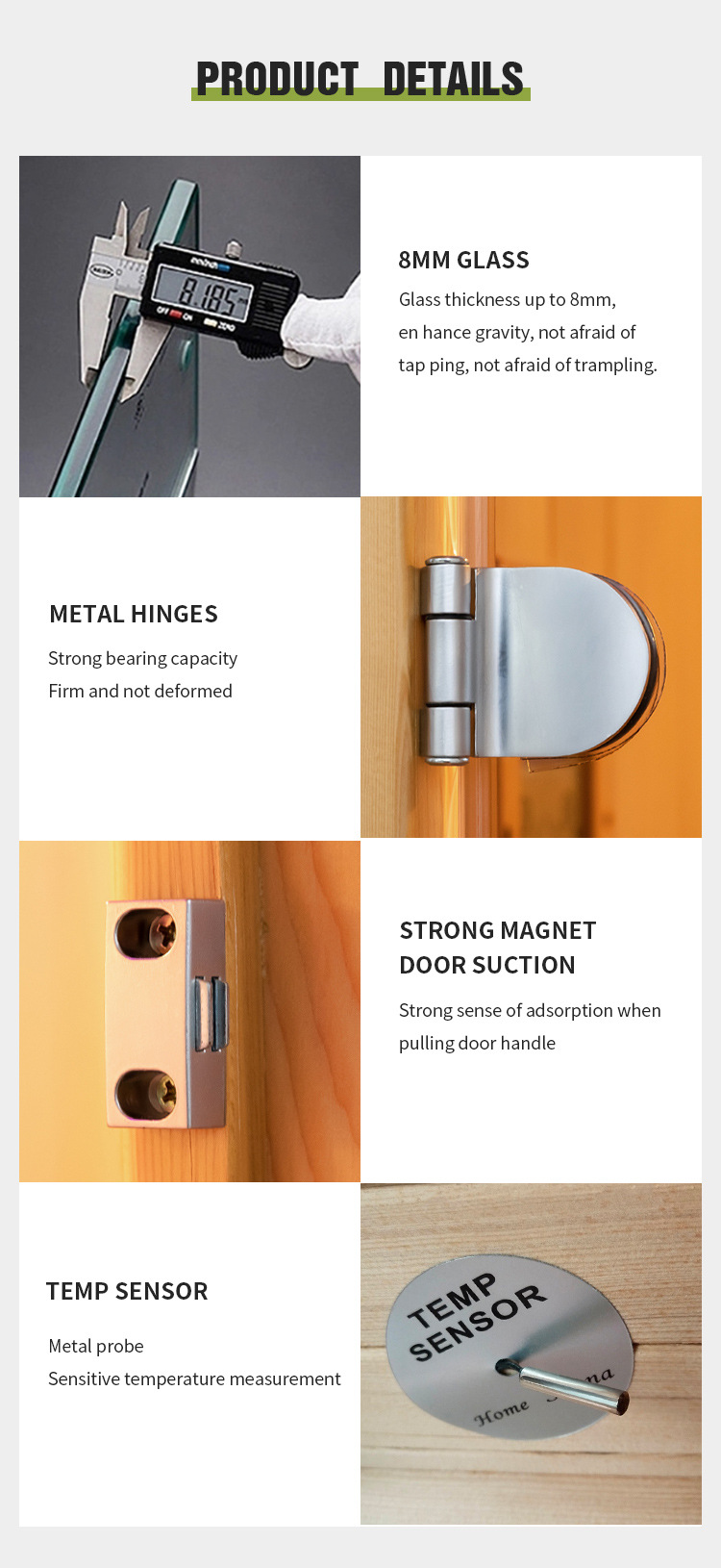 Загартоване скло 8 мм: Як показано в деталях продукту, дерев’яна інфрачервона та парова сауна на 1-3 особи має загартоване скло товщиною 8 мм. Він може похвалитися винятковою міцністю, підвищуючи опір гравітації. Вам не потрібно турбуватися про постукування чи топтання – він створений, щоб витримувати щоденне використання.