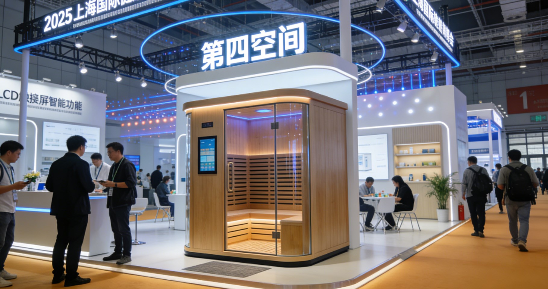 На нещодавно завершеній Шанхайській міжнародній виставці індустрії охорони здоров’я 2025 року концепція «Четвертого простору»приміщення саунивиставлені такими компаніями, як Xuzhou Kangzhiyuan, привернули увагу. Продукт оснащений сенсорним РК-екраном, інтерфейсом прямої трансляції Tiktok і функцією голосового регулювання температури, яка підтримує визначену користувачем температурну криву та систему аромату (наприклад, виділення ефірної олії лимонної трави при 60 ℃, перемикання кедрового аромату при 80 ℃), і навіть може підключити інтелектуальний туалет для моніторингу складу поту.