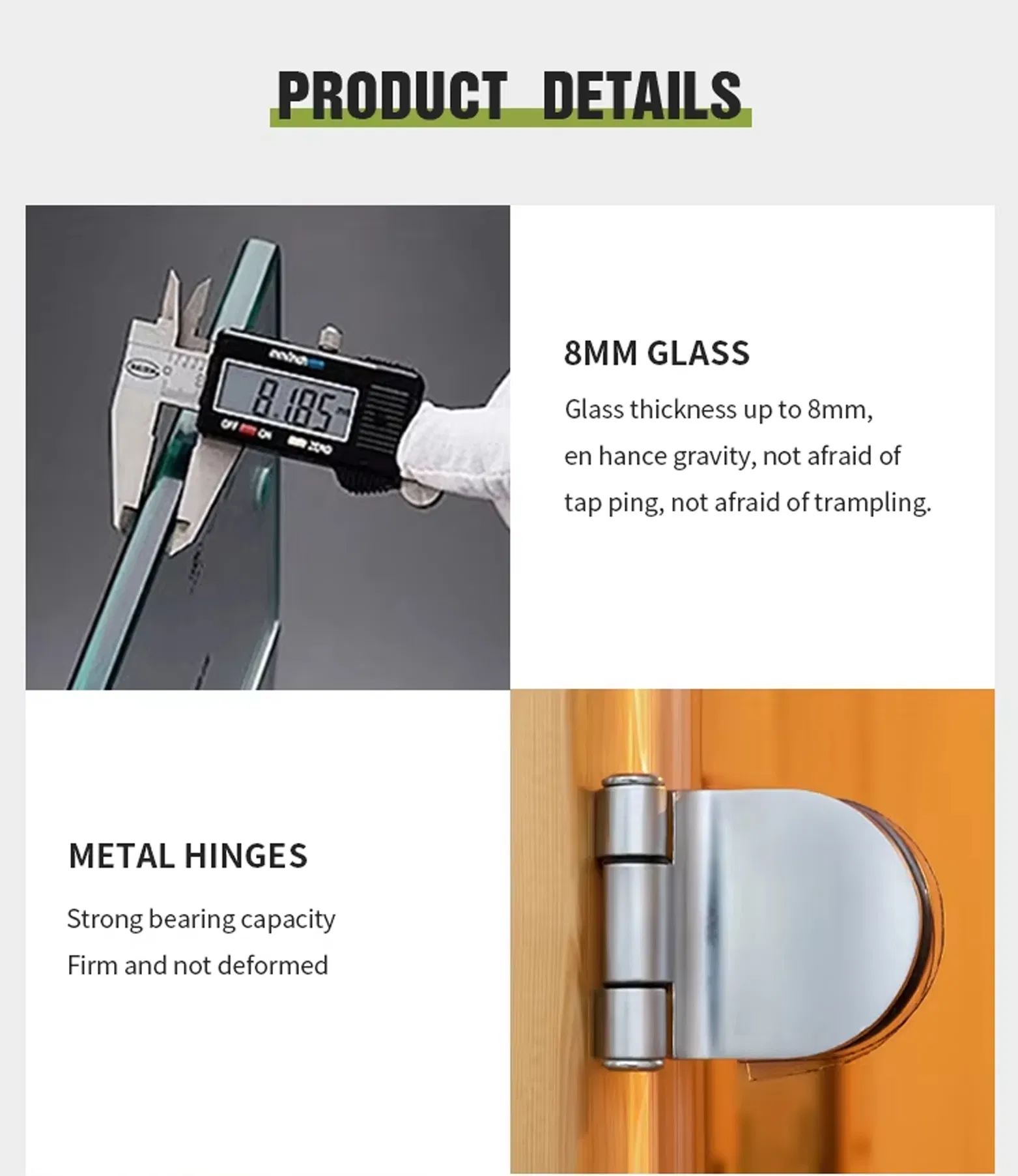 ✅Довговічність готельної якості – посилена 8-міліметровим загартованим склом, міцними петлями та магнітними дверними замками, щоб витримати щоденне використання.